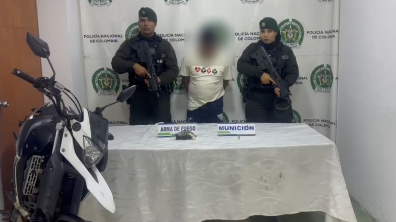 Los capturados, junto con el arma y la moto, fueron puestos a disposición de la Fiscalía General de la Nación, que definirá su situación judicial.